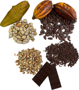 Matérias-primas dos produtos: cacau, castanha do Maranhão, nibs (castanhas em pequenos pedaços)