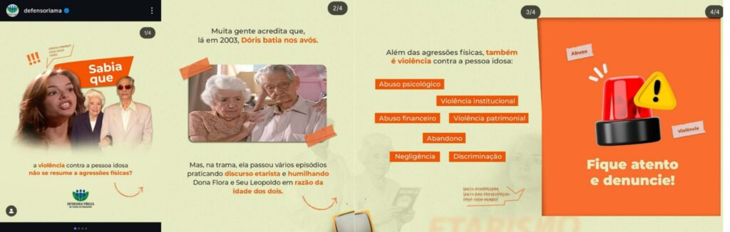 Um dos principais focos da investigação está na intertextualidade, entendida como o diálogo entre diferentes textos e referências culturais. A pesquisa mostra que a instituição pública recorre a elementos amplamente conhecidos do repertório social, como novelas, cenas televisivas e conteúdos virais, para aproximar conceitos jurídicos do cotidiano das pessoas. Esses recursos funcionam como pontes interpretativas, facilitando a compreensão de temas como violência contra pessoas idosas, pensão alimentícia e direitos e deveres legais.