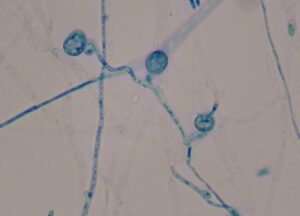 Clamidósporos – estrutura de resistência do fungo do F. oxysporum f. sp. coriandrii