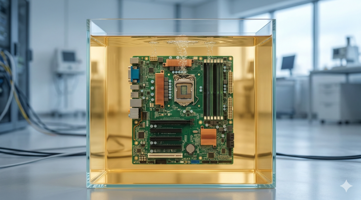 É aqui que entra o projeto liderado pela Proodos Tecnologia. A solução não busca apenas eficiência, mas uma quebra de paradigma: a imersão líquida. Ao contrário do ar, que é um isolante térmico pobre, o óleo de babaçu — enriquecido com nanopartículas — é um condutor de calor excepcional.